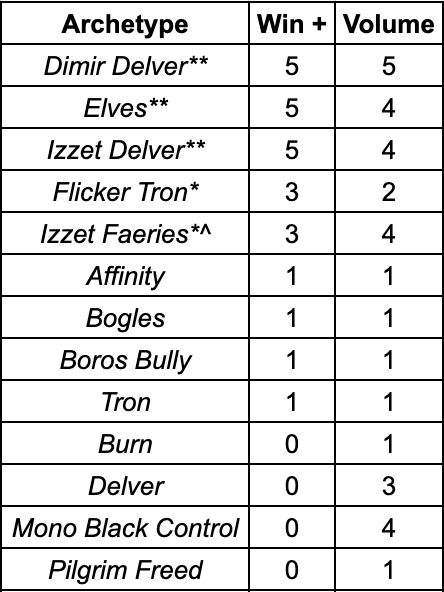 The May 16th Challenge was all about Mystic Sanctuary. Five of the Top 8 decks ran the land alongside the Deprive and Tragic Lesson engine. Rounding out the Top 8: two copies of Elves and a copy of Flicker Tron. A Dimir Delver player ran the table in the Swiss and ended up in the Top 4 but the finals pitted Izzet Delver against Izzet Faeries.