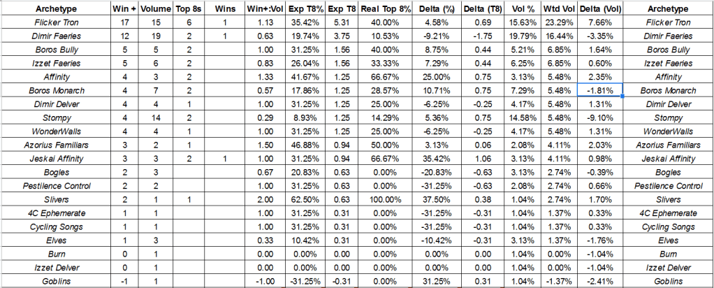 There really wasn’t much of a surprise with any of this. Rather, the decks that did well last season were well represented and – shock of shocks – Dimir Faeries and Flicker Tron were the best decks in the Challenges. But what happens when you add the PTQ into the mix?