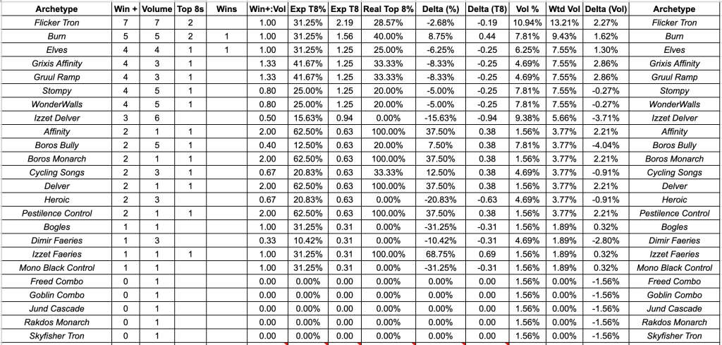 First I think we can all agree that yes, Flicker Tron is the deck to beat early on but that would be the case regardless of any new release. What is interesting is that we are seeing various aggressive decks on the rise. As we saw at the tail end of Kaldheim season, decks like Boros Bully and Stompy were returning to the fold. Now both of these decks have access to some new toys in Thrilling Discovery and Bayou Groff and it would not surprise me to see them continue these trends.
