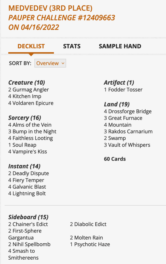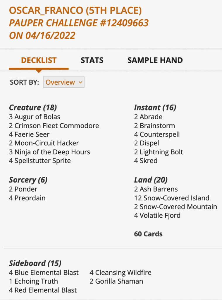None of this is to say action needs to be taken. In fact, the format looks relatively robust and healthy (outside of Faeries one weekend spike). While it does look rather different than Pauper before Modern Horizons 2, the format still appears to be in a good spot overall. And with Streets of New Capenna around the corner ready to rough things up, I think we’re poised for an interesting, and fun, summer.
