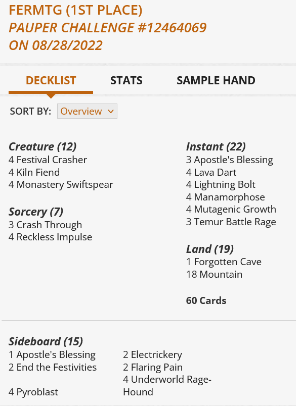 So for one of the first times in Pauper’s history red has the ability to kill you fast or slow. The kind of cards that are good against fast red are not as strong against slow red and vice versa. Even cards that are somewhat powerful against fast red, like Weather the Storm, are somewhat useless in the face of Temur Battle Rage.